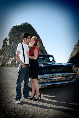 When I got a phone call from Casey, wanting to set up her engagement session, I was walking on Ventura Pier, enjoying the last day of 2008. She told me that she had arranged for a vintage car and was going for something different for her and Chris’ engagement photos. The location, Mugu Rock on Coast Highway, was chosen because it was a sort of touch stone in their relationship, starting with when Chris had gotten his drivers license and had driven them there together for the first time. I was so excited when I drove up and saw the car and their matching outfits. I wanted to share it for some time, and now I can! To see their wedding slide show, click HERE.